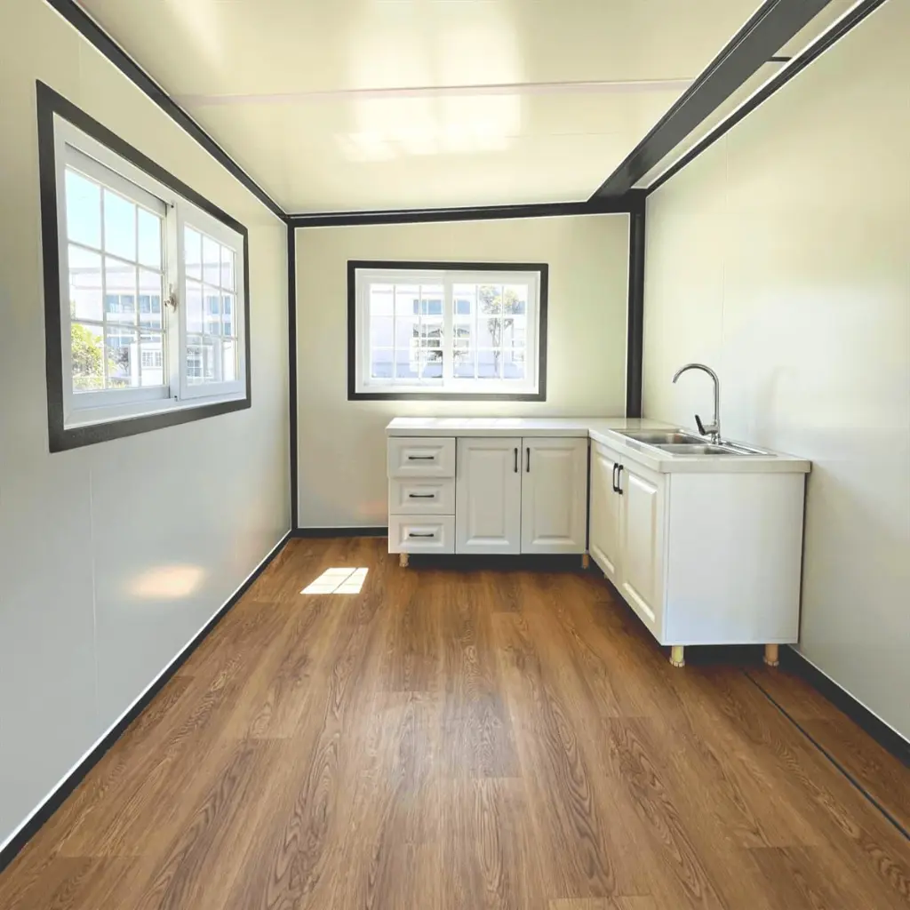 • [Essential Amenities at Your Fingertips] Enjoy the convenience of having essential amenities close at hand. Our prefabricated home includes a bathroom, shower, and built-in kitchen cabinets, so you can enjoy the comforts of home wherever you go. Optimal use of space ensures that every square meter is thoughtfully designed without compromising on style.