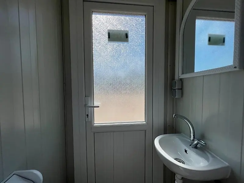 2x WC with washbasin, 2x frosted glass doors, 2x ventilation
