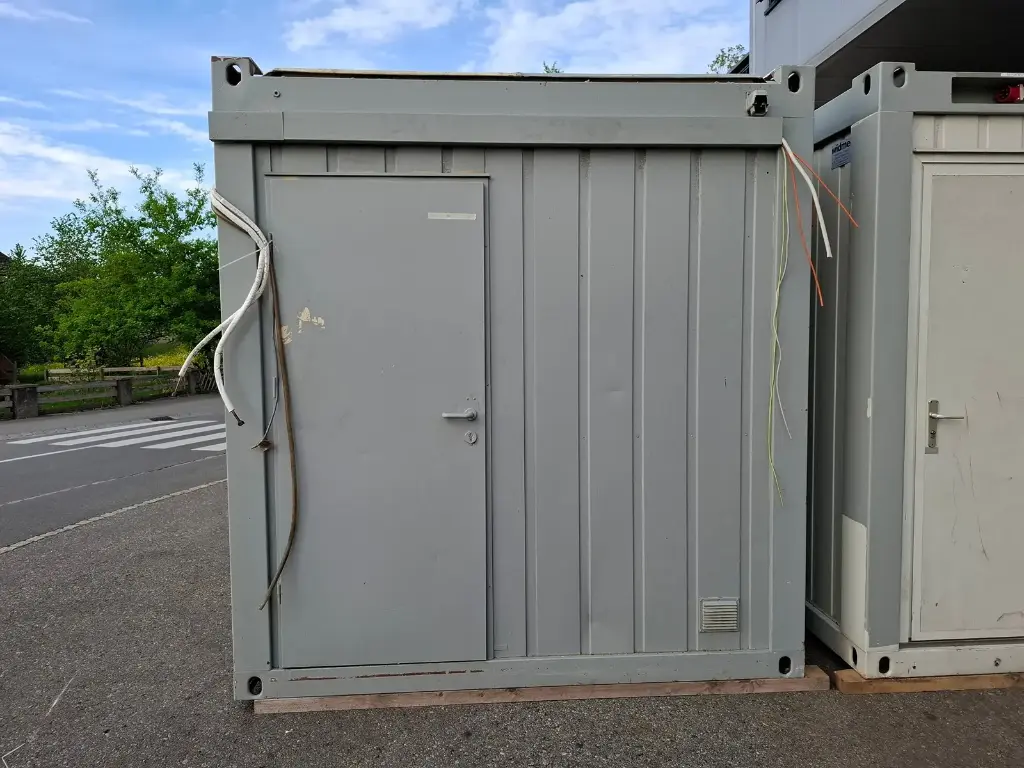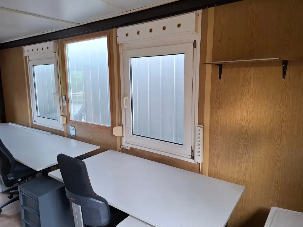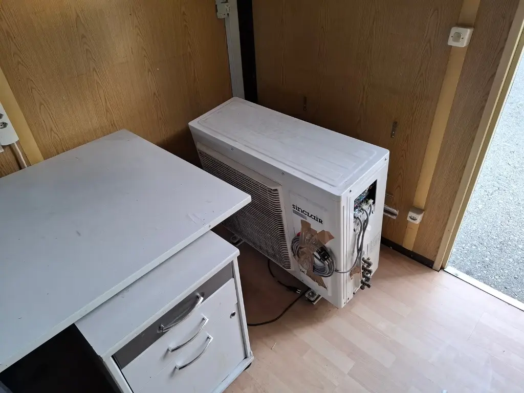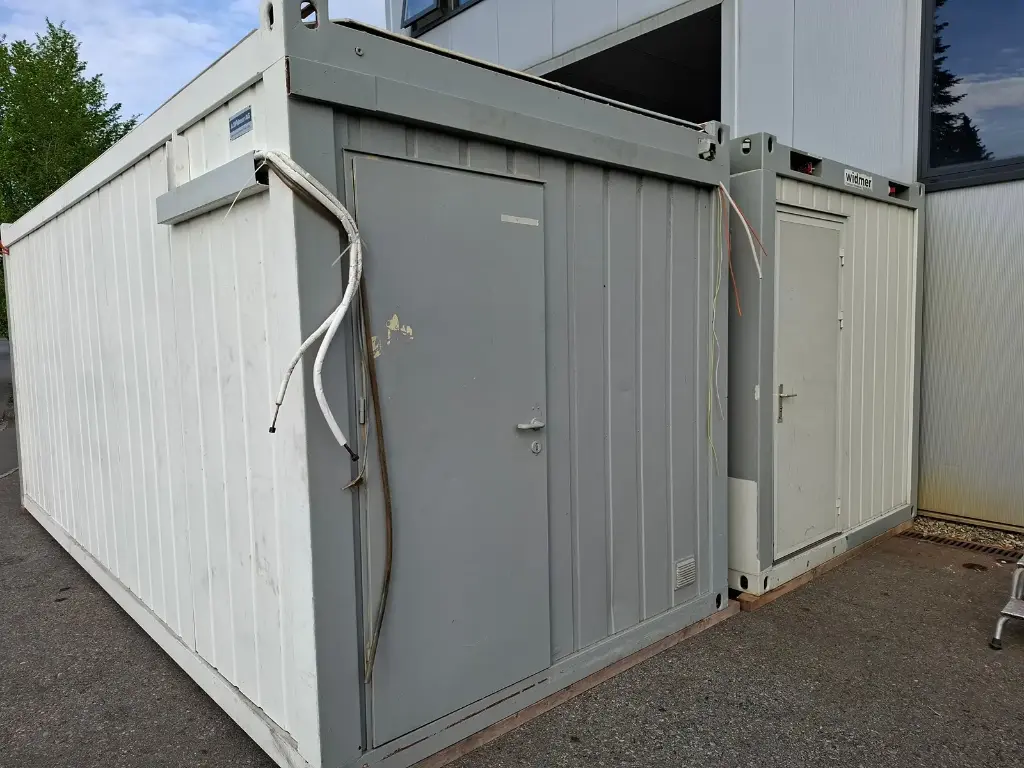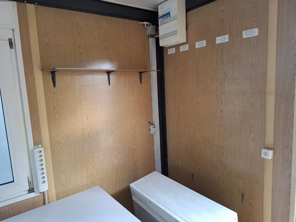 20″ container with office equipment. Two windows and two doors on each side. With air conditioning, lighting, and power outlets.