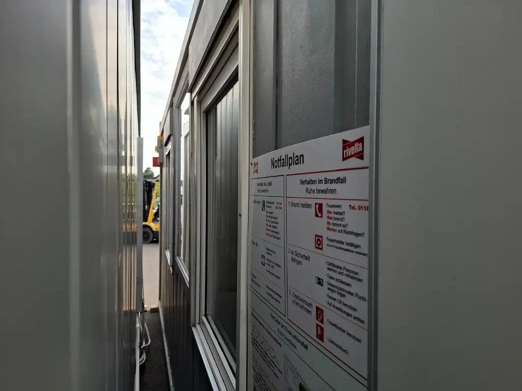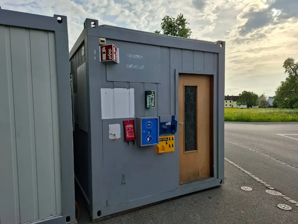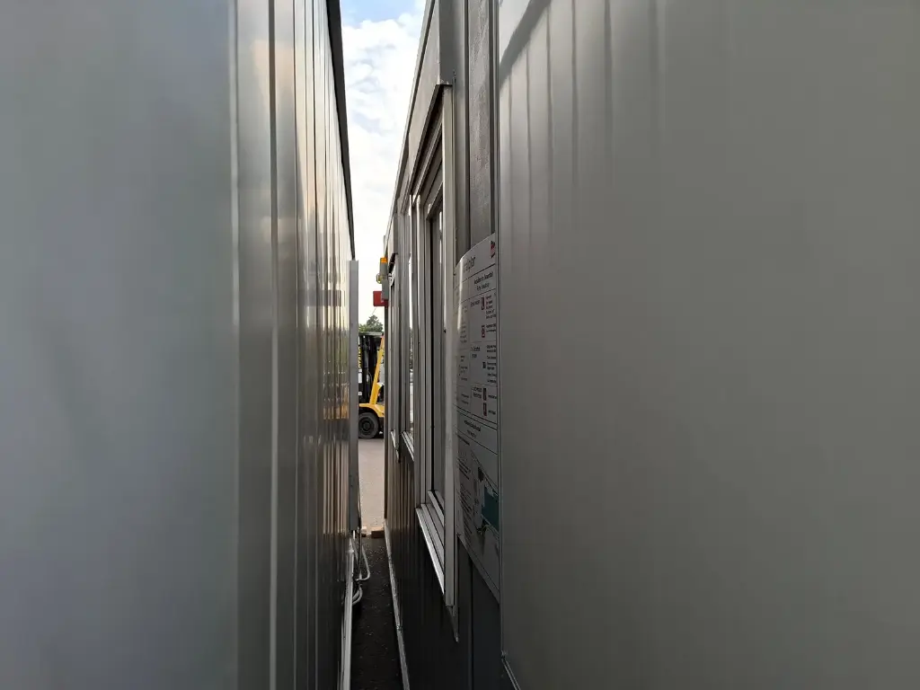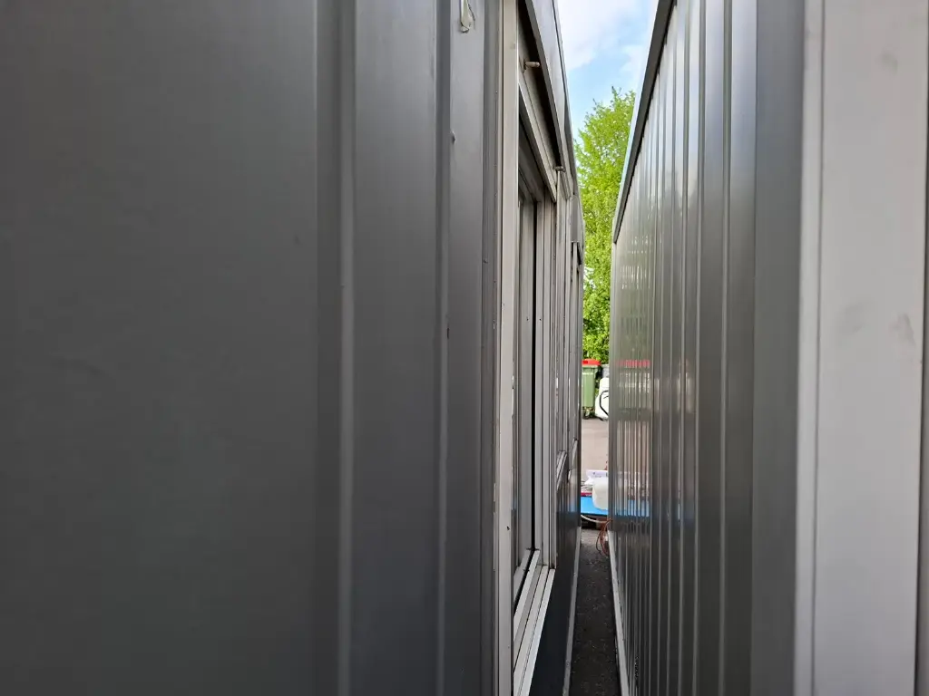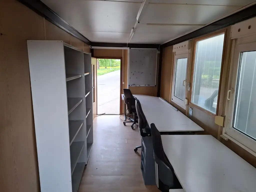 20″ container with office equipment. Two windows and two doors on each side. With air conditioning, lighting, and power outlets.